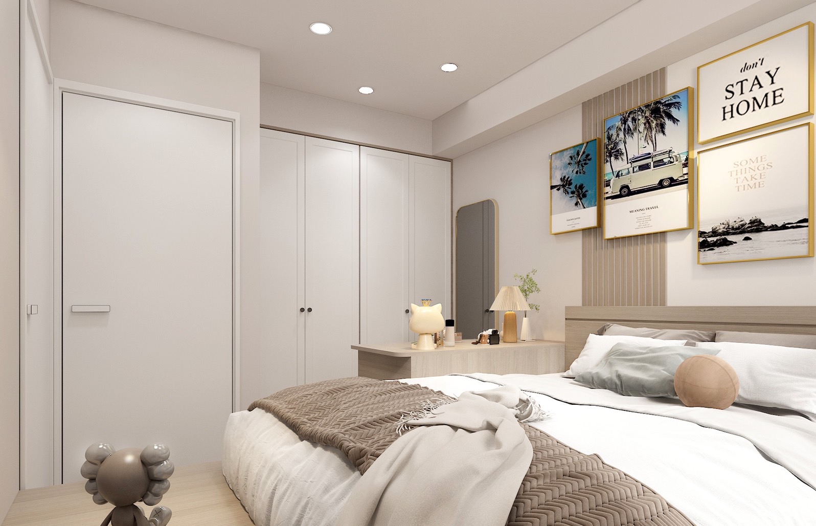 壁面選擇暖色調來營造溫馨感,或是冷色調來創造清新的氛圍。房間內確保有充足的光線,色溫選擇黃光及自然光隨時切換,適合學習和休息的不同需求。牆面可以貼上自己喜歡的海報或照片,增加個人特色,並加入一些植物,增添生氣和活力。業主讓小孩參與到翻新的每一步中,從設計到選購,讓小孩更珍惜自己擁有的獨立空間。