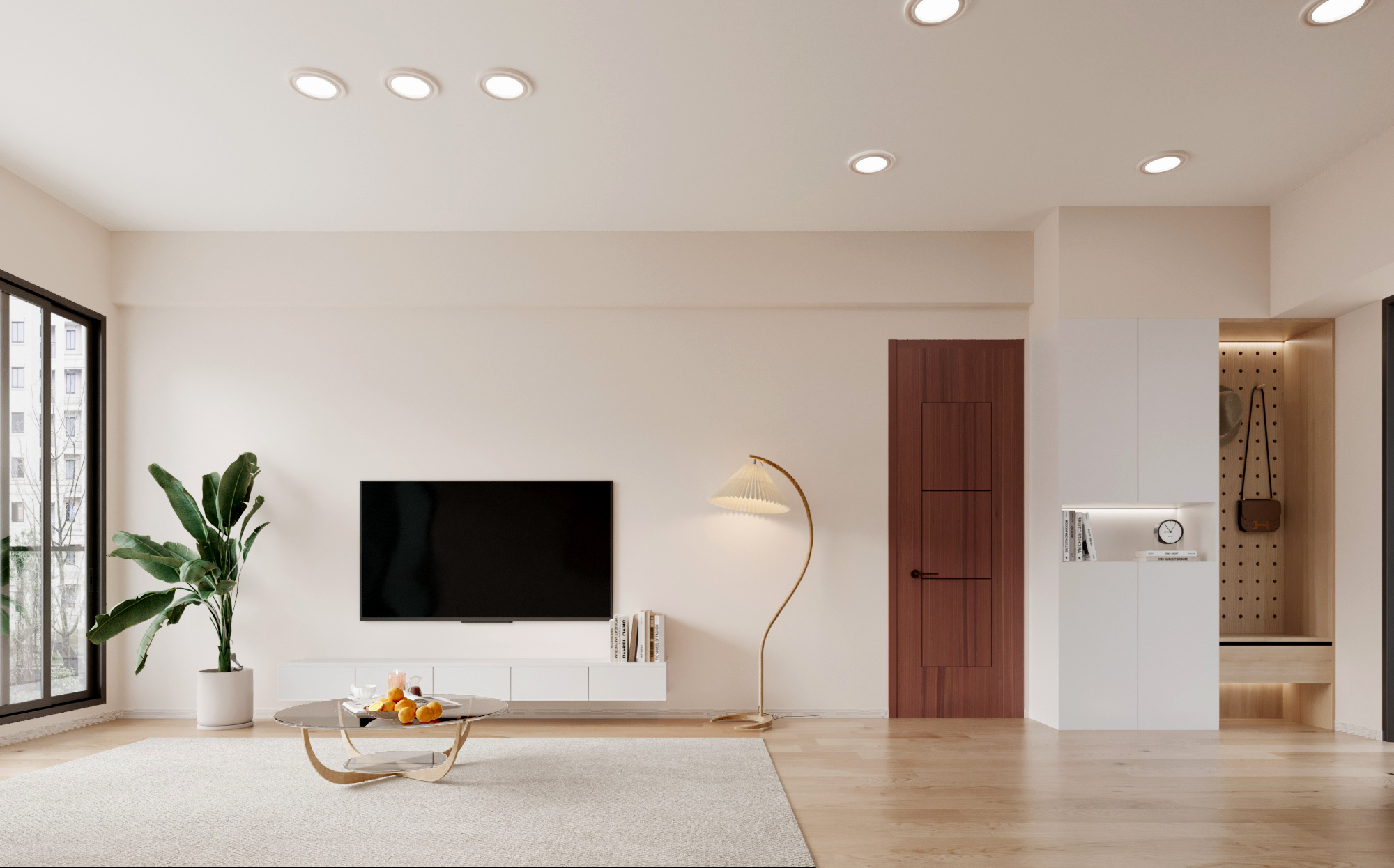 以現代極簡與日式無印風格為設計靈感,透過淺色木質元素與大面積的中性色調,創造了寧靜且和諧的生活環境。無論是寬敞明亮的客廳,還是舒適溫馨的臥室,都反映了追求極簡生活的理念。簡單的家具配置與細緻的收納設計,賦予居住者心靈上的放鬆與舒適,展現現代居家美學的精髓。