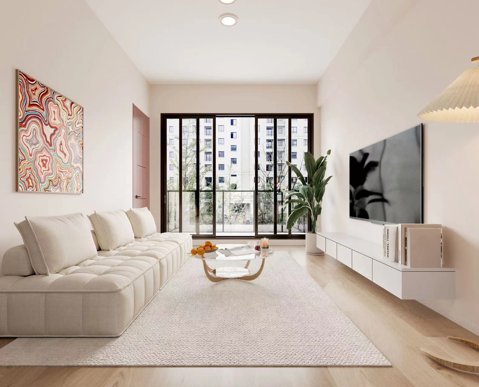 客廳設計強調寬敞與明亮,以淺色調作為基礎,搭配大面玻璃窗引入充足的自然光,讓空間更顯通透。選用簡約的家具與低飽和度的色彩,使整體氛圍舒適且不失品味。牆面設計簡潔,巧妙運用掛畫點綴,創造一個靜謐而富有層次的生活空間。