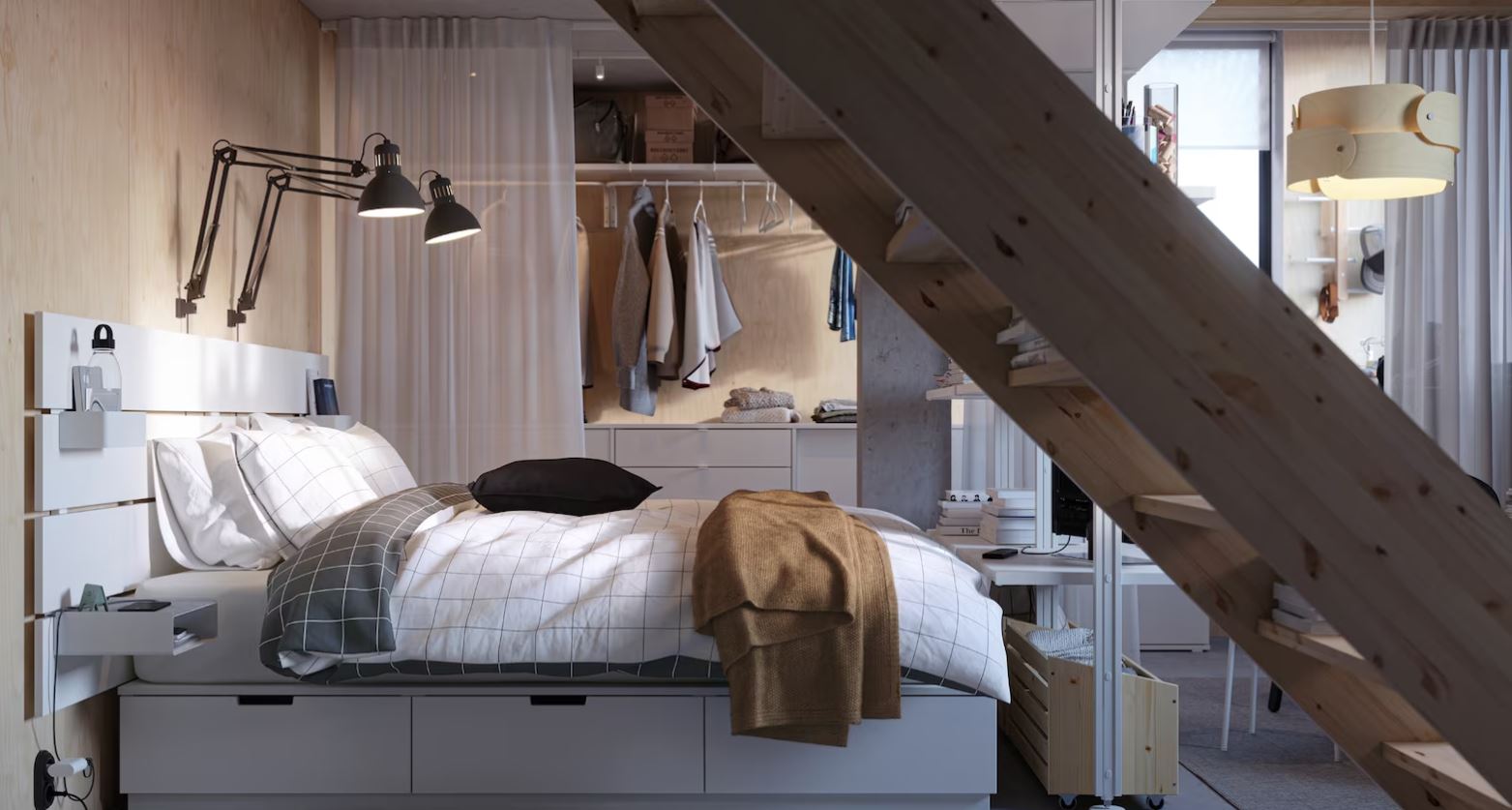床下的空間可以用來儲物,而床邊的隔層可以提供微妙的隱私保護。